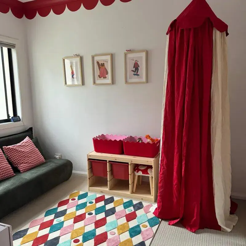 Then, the Circus Linen Canopy brings playful charm with a tent-like vibe that kids love. Moreover, it helps define a special corner for stories and quiet time, so your nursery or playroom looks more intentional and photo-ready.